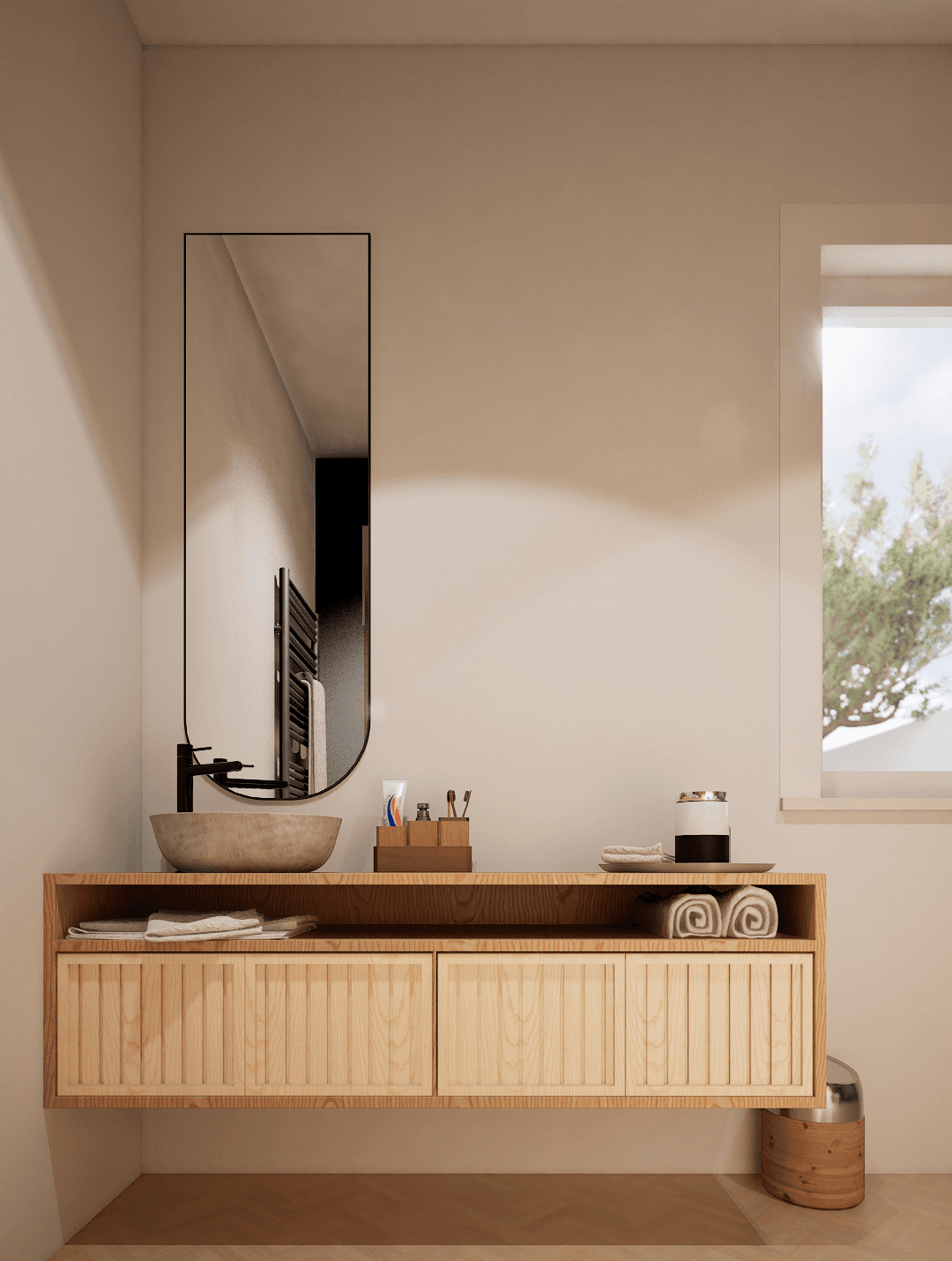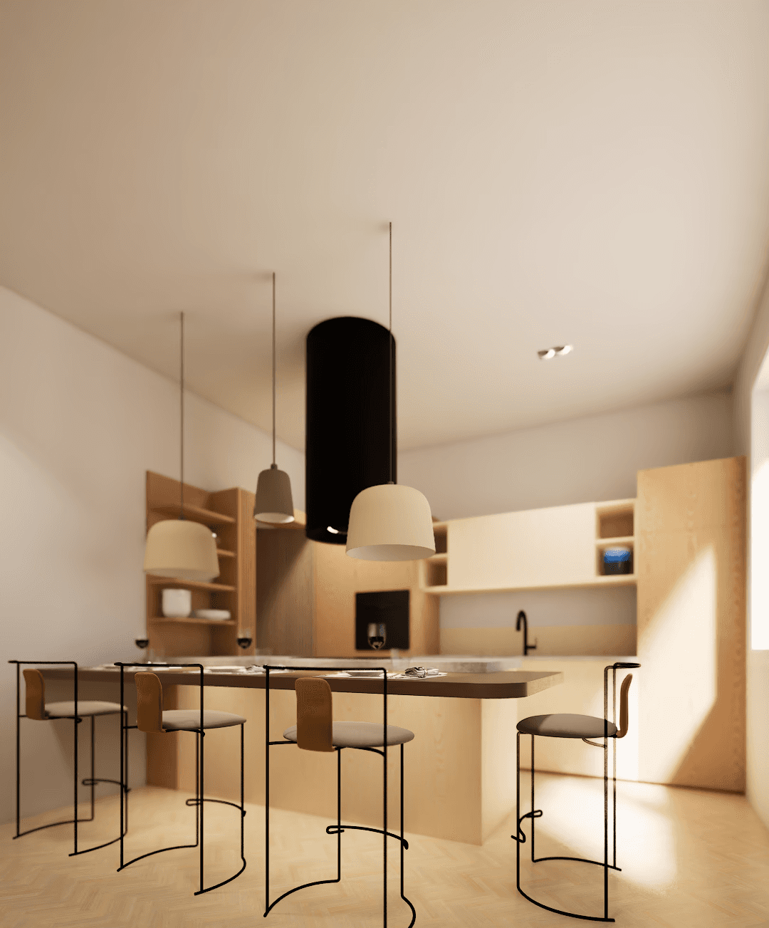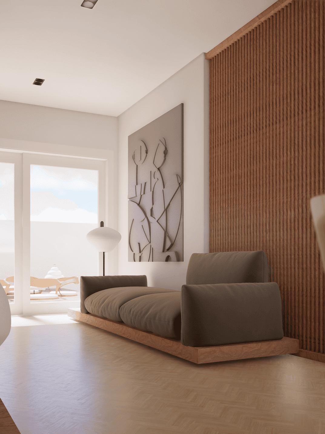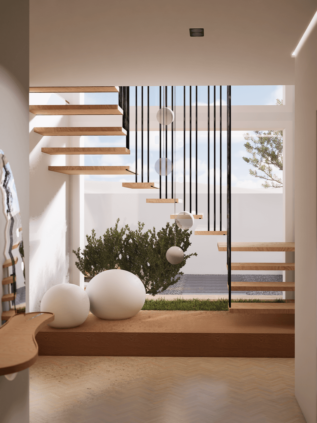 Il progetto di questa abitazione è ispirato allo stile Japandi, reinterpretato attraverso un linguaggio contemporaneo ed essenziale. Gli spazi del piano principale sono pensati come un unico ambiente fluido, caratterizzato da una forte continuità visiva e materica.