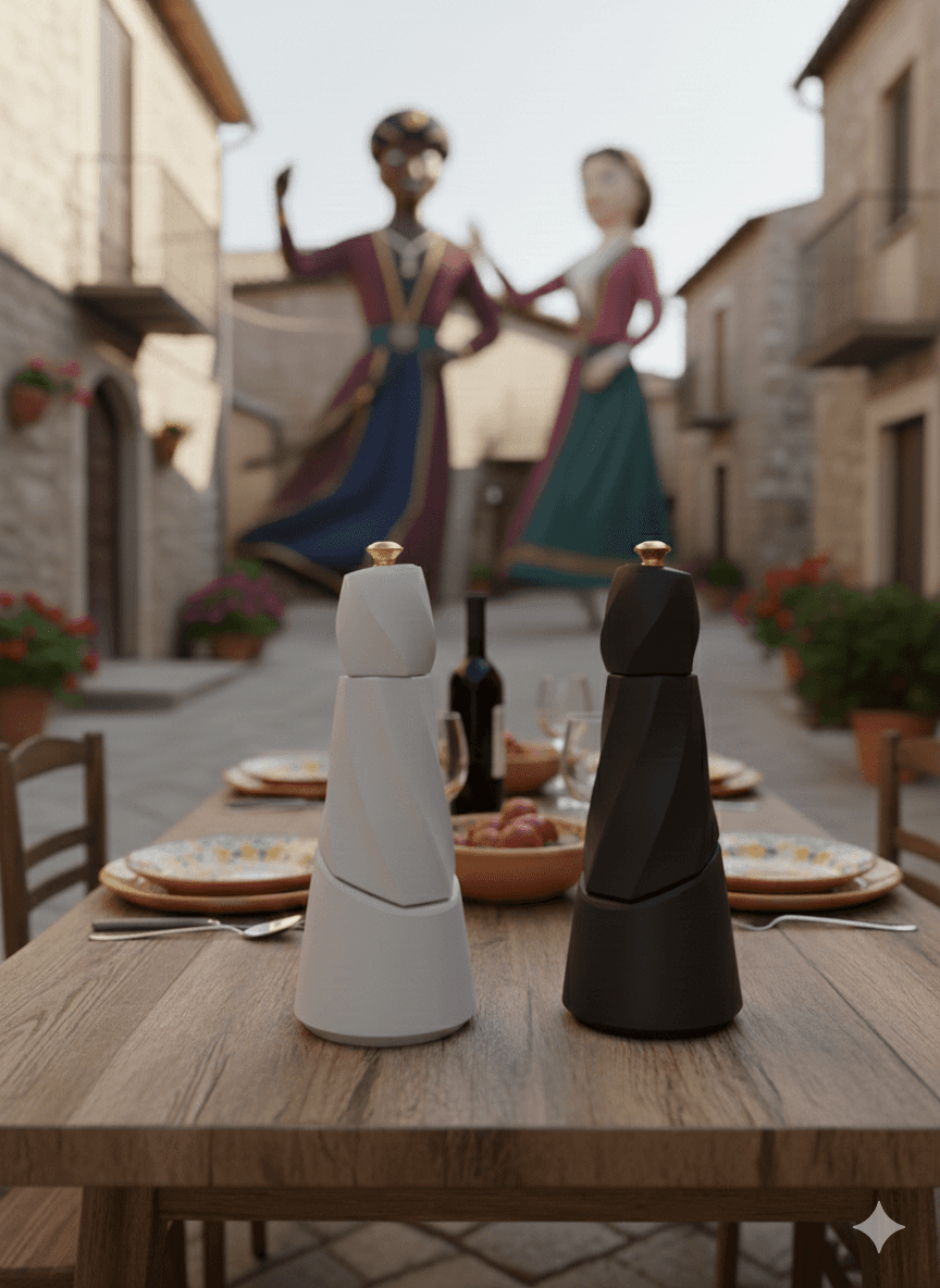 Richiamano la dualità, il contrasto e la necessità reciproca: luce e ombra, quiete e forza, sale e pepe.